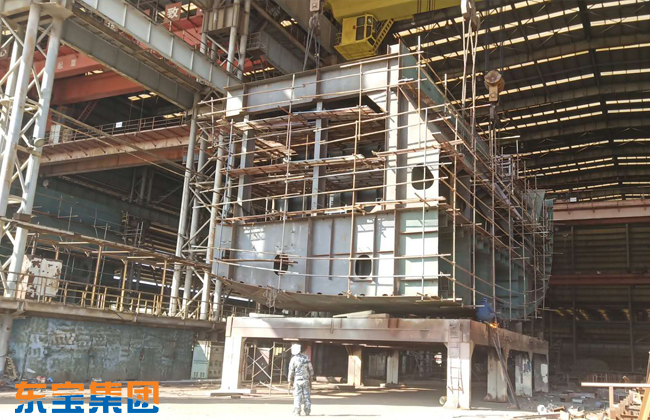 On March 11, 2020, liaoning dongbao heavy industry co., LTD., a 210,000 ton no. 22 steel fishing boat segment 831 successfully got pregnant today. The section is a section of bow and bottom, with a total length of 22 meters, a width of 9 meters, a height of 8.7 meters, and a weight of about 230 tons.